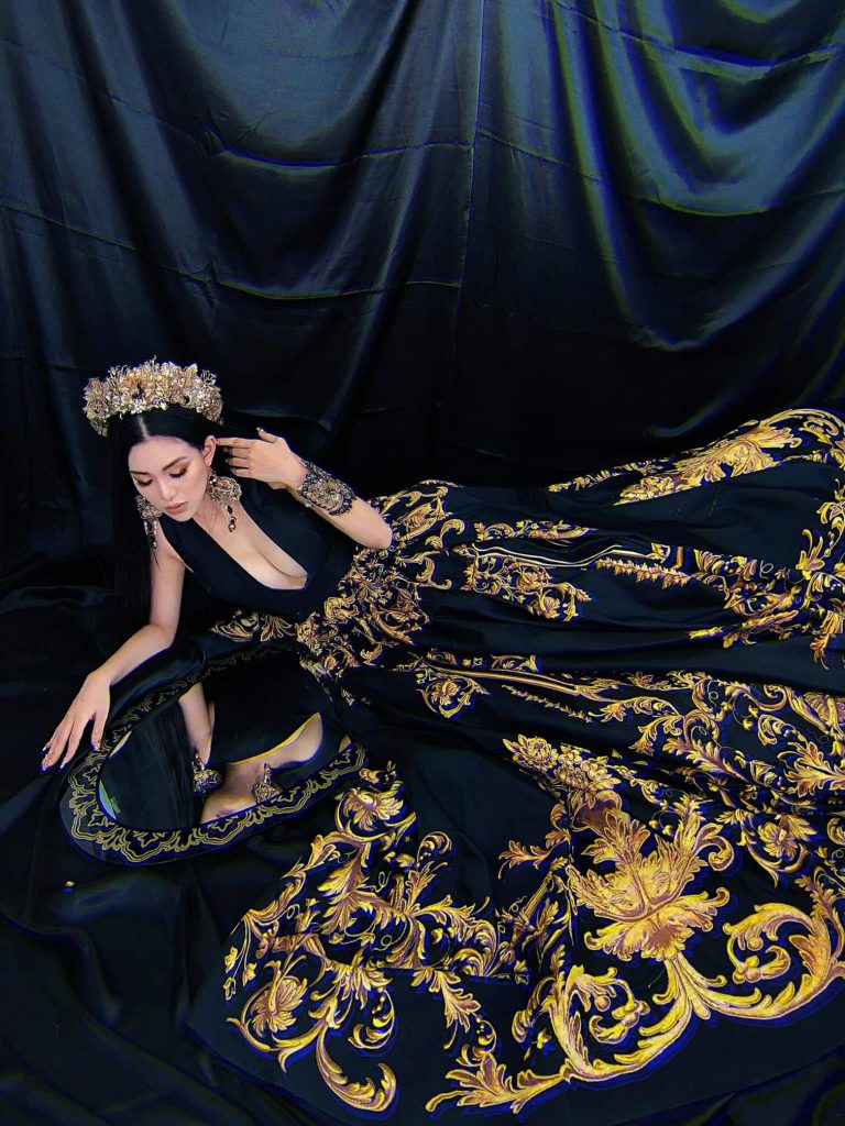 “Để tôn lên giá trị bộ trang phục, HuTu còn chủ ý thiết kế các phụ kiện đi kèm. Từ đó, giúp chủ nhân toát lên vẻ đẹp sang trọng, quyến rũ và thu hút mọi ánh nhìn mỗi khi xuất hiện” – NTK Micae Vũ cho biết.