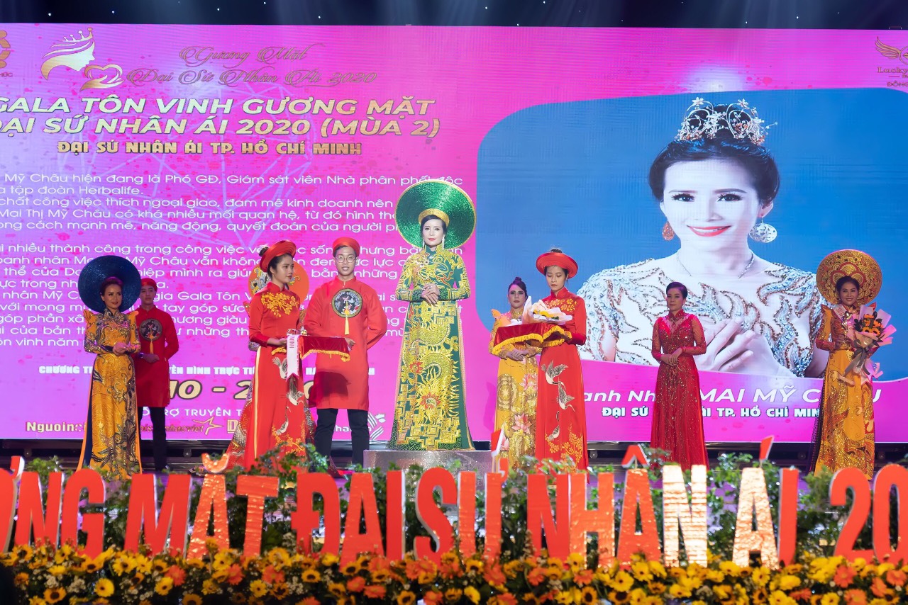 Hoa hậu Nhân ái Mai Mỹ Châu, đến từ TP.HCM hiện đang là Phó GĐ, Giám sát viên Nhà phân phối độc lập của tập đoàn Herbalife – thương hiệu được biết đến thông qua các sản phẩm về sắc đẹp và sức khỏe.