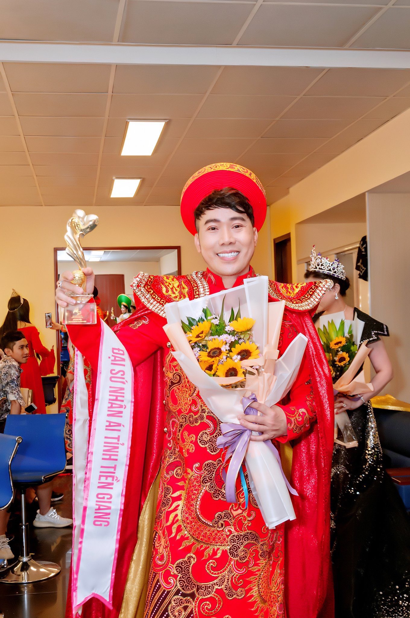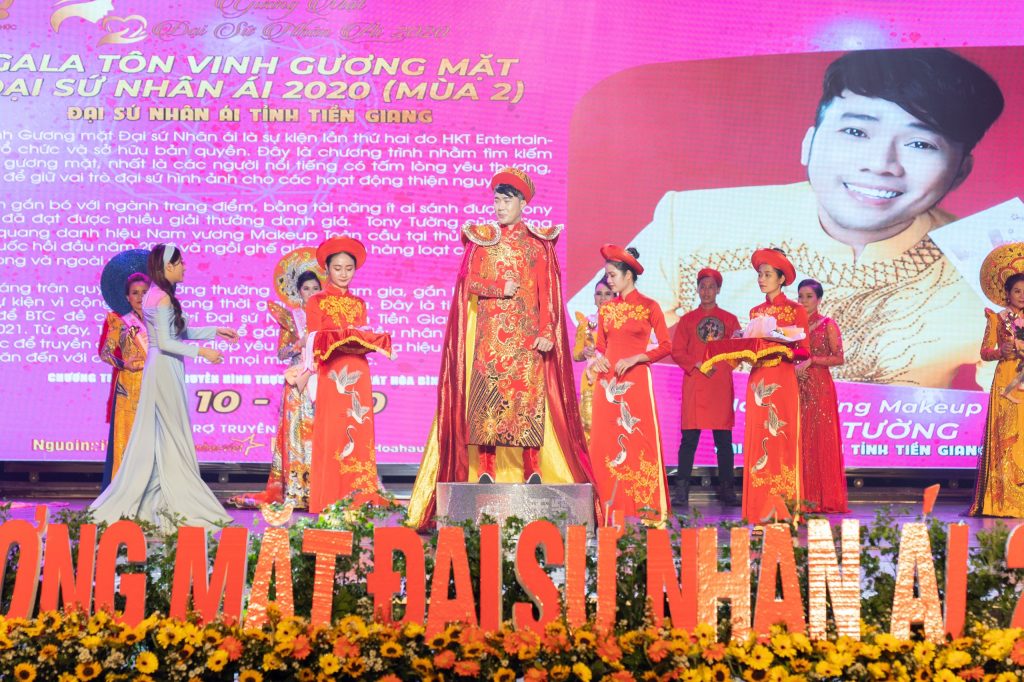 Qua đây tân Đại sứ Nhân ái tỉnh Tiền Giang cũng gởi lời cảm ơn chân thành đến photo Nguyễn Xuân Huy, Nguyễn Hoài Nam và NTK áo dài Tuấn Hải đã tạo nên một “siêu phẩm” giúp Tony Tường tỏa sáng đêm gala. Cùng chúc mừng tân Đại sứ nhân ái Tony Tường: