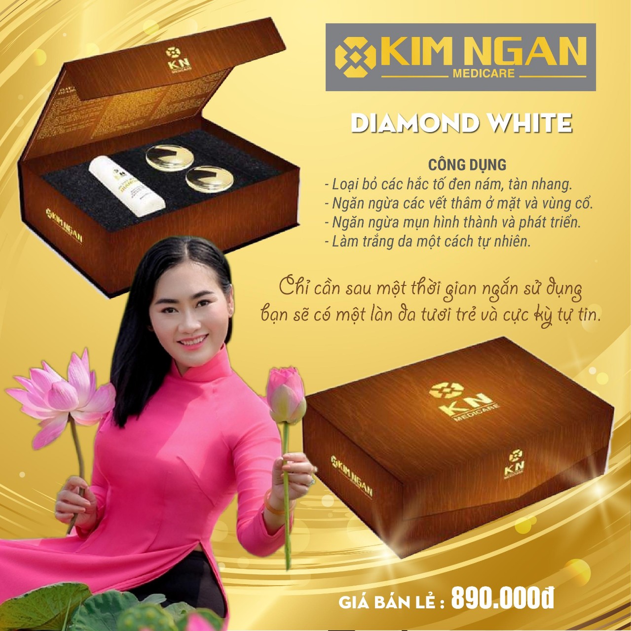 Hiện nay, Công ty TNHH Kim Ngân Medicare là nhà sản xuất và cũng sở hữu hàng trăm đại lý phân phối với các dòng mỹ phẩm làm đẹp như son kem lì không chì. Kem dưỡng trắng da, phấn trang điểm, nước hoa… Tất cả sản phẩm được điều chế từ những nguyên liệu ngoại nhập cao cấp trên dây chuyền công nghệ hiện đại được nhập trực tiếp từ Nhật Bản. Đầu tư bài bản, đúng mức nên Kim Ngân Medicare luôn là sự lựa chọn an toàn, hiệu quả của phái đẹp.