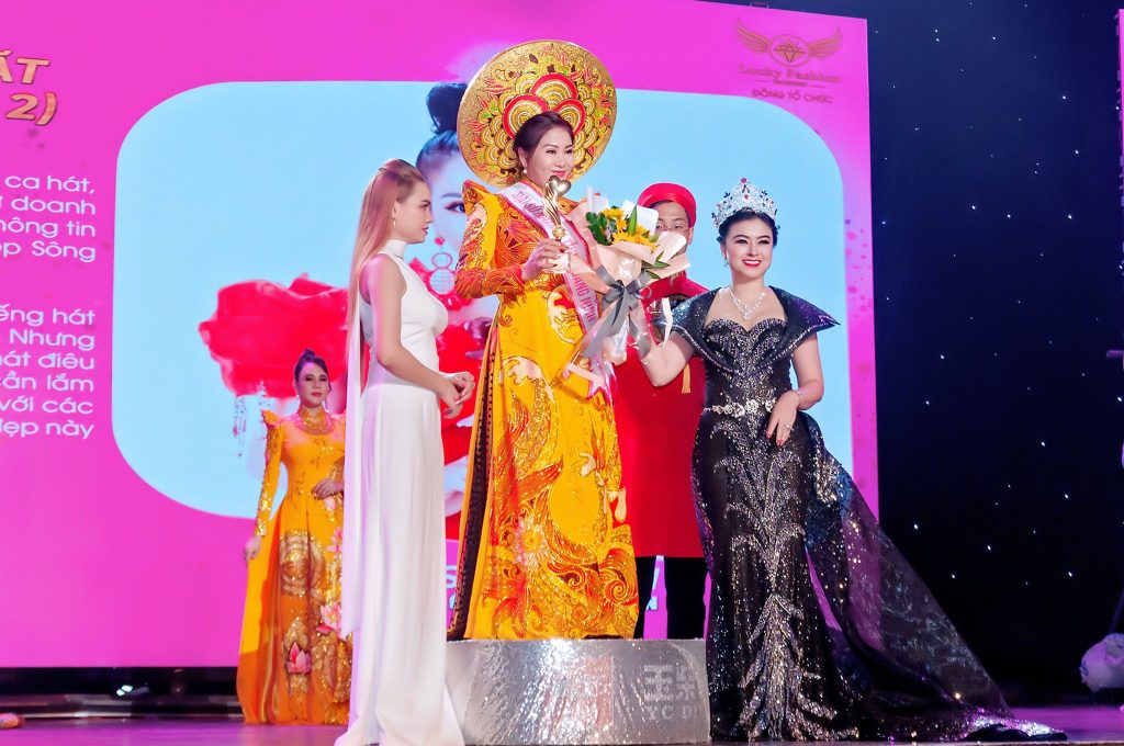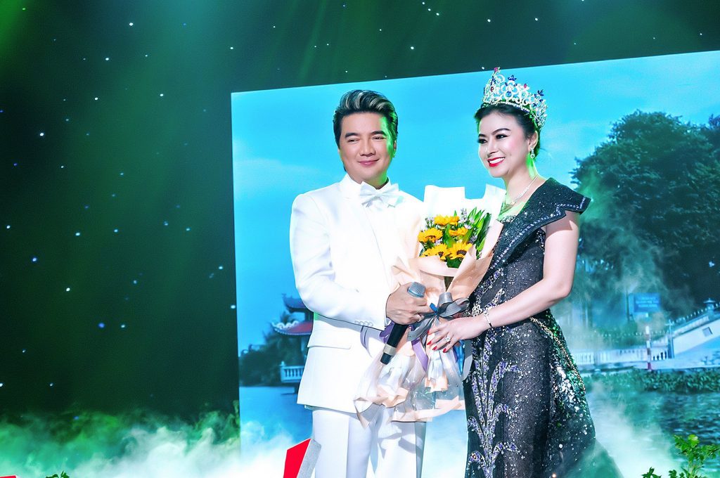 Được biết Hoa hậu Diệu Thúy cũng là người đẹp được mời trao cúp và chúc mừng tân Hoa hậu Nhân ái Thừa Thiên Huế – ca sĩ Lê Sông Lam.