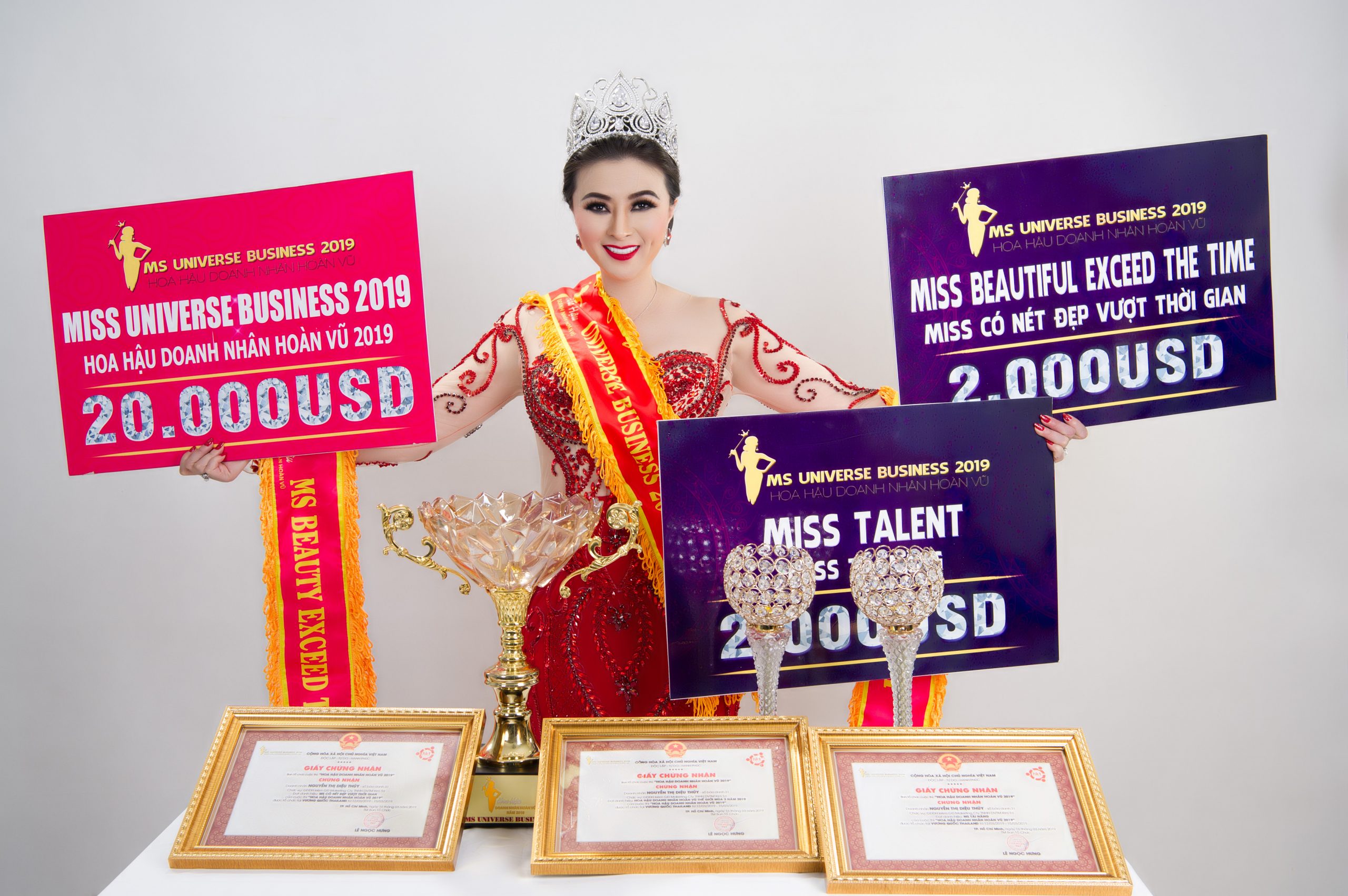 Giữa tháng 3 năm 2019, Diệu Thúy vượt qua hàng loạt ứng viên nặng ký để xuất sắc cùng lúc đăng quang 3 danh hiệu tại cuộc thi Hoa hậu Doanh nhân Hoàn vũ mùa thứ 3 tại Thái Lan. Trong đó có danh hiệu cao nhất và sở hữu chiếc vương miện quý giá. Đó vừa là khoảnh khắc tuyệt vời và cũng được xem là điểm bắt đầu để Diệu Thúy tỏa sáng trên tất cả các lĩnh vực.
