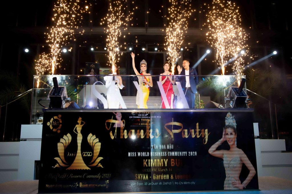 Mới đây tại Skyxx Garden Lounge Lê Duẩn, quận 1, TP.HCM, Hoa hậu Cộng đồng Doanh nhân Thế giới – Ms World Community Business 2020 Kimmy Bùi đã tổ chức dạ tiệc tri ân và nhìn lại chặng đường đăng quang của mình. Đại diện BTC, các hoa hậu, á hậu, tân á hậu, các ngôi sao giải trí, bạn bè, người thân đã đến tham dự, chia vui và chúc mừng cô.