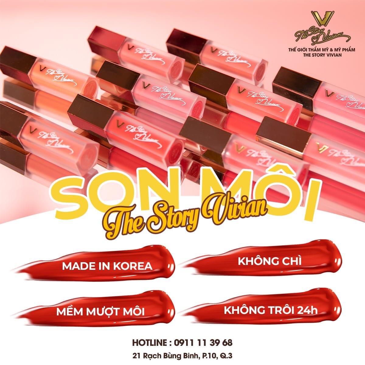 The Story Vivian là thương hiệu mỹ phẩm cao cấp Hàn Quốc độc quyền tại thị trường Việt Nam. “Đẹp là chìa khóa thành công trong sự nghiệp đối với Phụ nữ” như là thông điệp nho nhỏ mà Thế Giới Mỹ Phẩm – The Story Vivian (thuộc Vivian Group) muốn truyền tải. Với nhiều năm kinh nghiệm trong lĩnh vực làm đẹp, thương hiệu The story Vivian đã luôn miệt mài và nghiên cứu cùng với các chuyên gia hàng đầu Hàn Quốc để chọn lọc và chiết xuất các dòng sản phẩm đủ để chinh phục mọi khách hàng như các dòng chuyên về chăm sóc da và son môi.