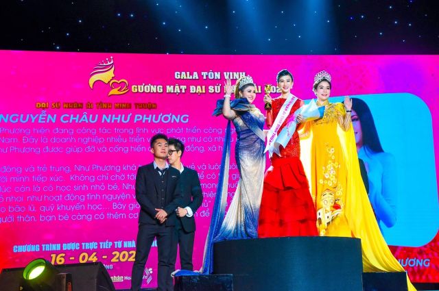 Trong đêm Gala Tôn vinh Gương mặt Đại sứ Nhân ái 2022 vừa mới diễn ra hôm qua, 16/4, tại nhà hát Hòa Bình – TPHCM, nữ doanh nhân Nguyễn Châu Như Phương chính thức được bầu chọn là Đại sứ nhân ái tỉnh Bình Thuận. Từ đây, cô gái xinh đẹp này bắt đầu hành trình thiện nguyện của mình như mục đích ban đầu mà BTC đã đề ra.
