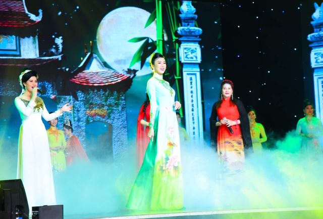 Sau các phần trình diễn áo dài và đầm dạ hội dưới nền nhạc và ánh sáng đầy màu sắc, doanh nhân trẻ Như Phương vinh dự được Hoa hậu Nhân ái Trần Hoa (Quảng Nam) và Hoa hậu Nhân ái Lê Thị Thu (Thanh Hóa) trao kỷ niệm chương cho danh vị và sứ mệnh mới.