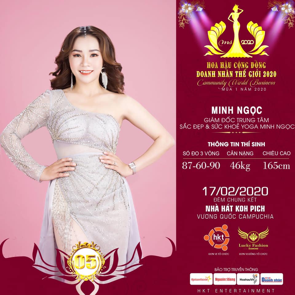 Năm 2019 dần trôi qua cũng là thời điểm khởi tranh vòng chung kết Hoa hậu Cộng đồng Doanh nhân Thế giới 2020 chuẩn bị khởi đầu. Ban tổ chức, ekip chương trình đang “chạy nước rút” để hoàn thiện những khâu cuối cùng cho ngày hội tỏa sáng rực rỡ nhất của cộng đồng doanh nhân Việt trên toàn thế giới. Đến từ tỉnh Quảng Ngãi, nữ doanh nhân Mai Thị Như Ảnh (tên thường gọi Minh Ngọc) sẽ góp phần tạo nên “vườn hoa” xinh đẹp và tài năng cho cuộc thi lần này.