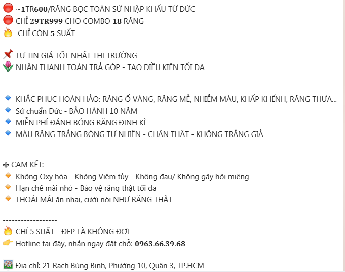 Cụ thể hóa những giá trị đích thực, dịch vụ bọc răng sứ toàn Đức của Thế Giới Thẩm Mỹ – The Story Vivian mà theo chia sẻ của Hoa hậu Vivian Trần – CEO, người sáng lập thương hiệu Vivian Group cho biết: Răng sứ Đức có độ chịu lực cao, đảm bảo chức năng nhai như răng thật; Màu sắc tự nhiên thuần khiết, tính thẩm mỹ cao; An toàn tuyệt đối với sức khỏe răng miệng, không gây hôi miệng, đen ố vàng, không bị oxi hóa theo thời gian và độ bền có thể lên đến 20 năm…