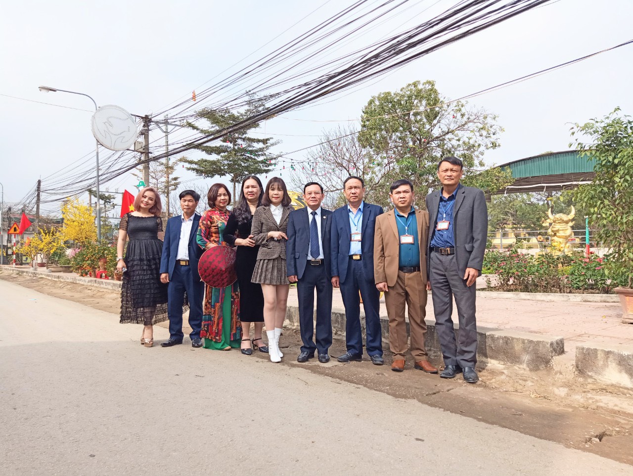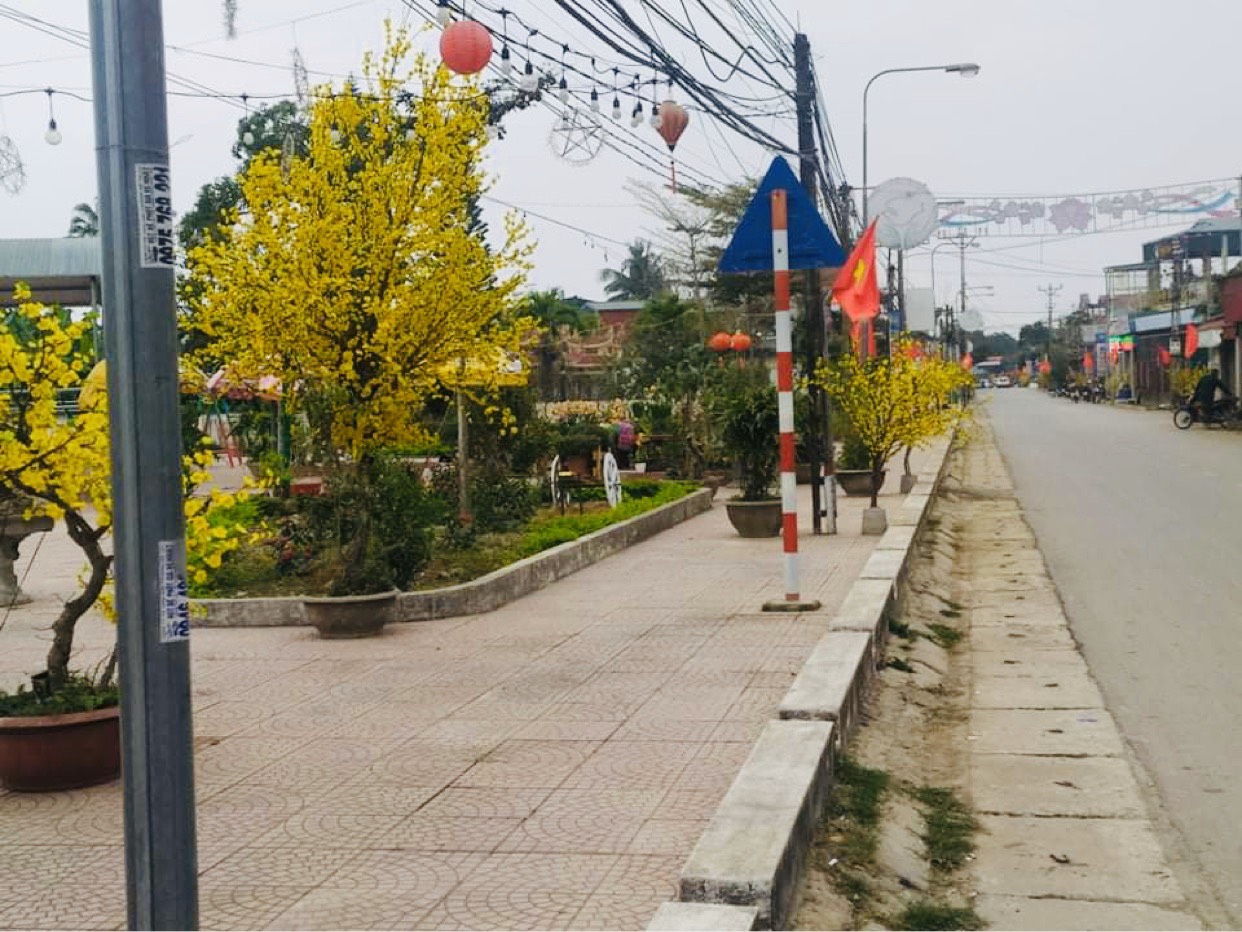 Những cành hoa mai vàng rực, hoa đào đỏ thắm; phố xá được trang hoàng trông thật lộng lẫy tại một số con đường, đặc biệt là từ sau khi được nâng cấp từ xã lên thị trấn, những ngày giáp tết thu hút đông đảo bạn trẻ dạo chơi, chụp hình lưu niệm.