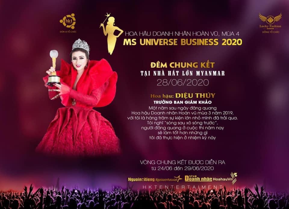Được biết, dự kiến vào tháng 7 tới đây, Hoa hậu Diệu Thúy sẽ đảm nhận vai trò Trưởng Ban giám khảo cuộc thi Hoa hậu Doanh nhân Hoàn vũ mùa thứ 4 tổ chức tại thủ đô Nây – Pi – Đô, nước Cộng hòa Liên bang Myanmar.